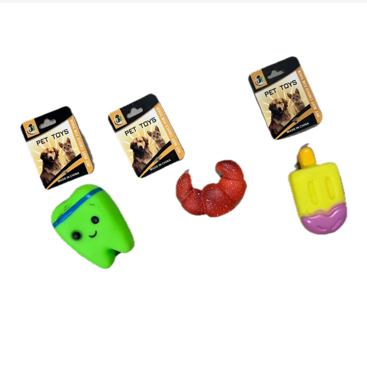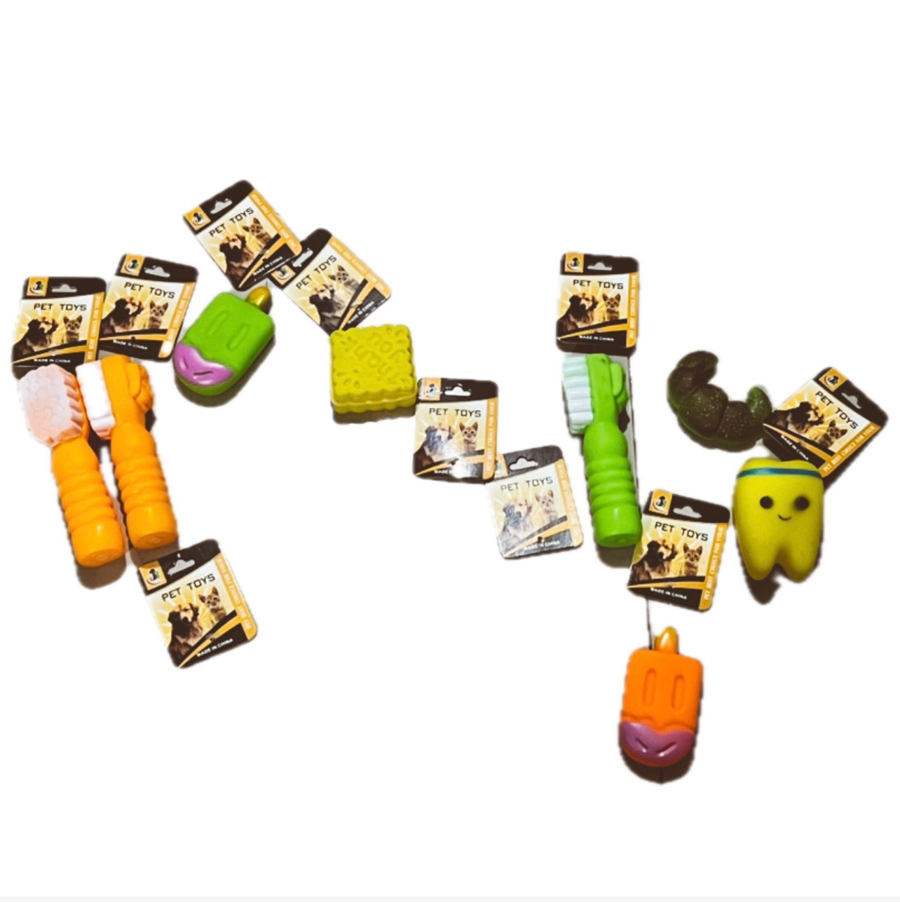 El precio es por pieza no por paquete. La selección del juguete es al azar por lo que puede variar de acuerdo al inventario. Es de plástico con chillido ideal para cachorros.