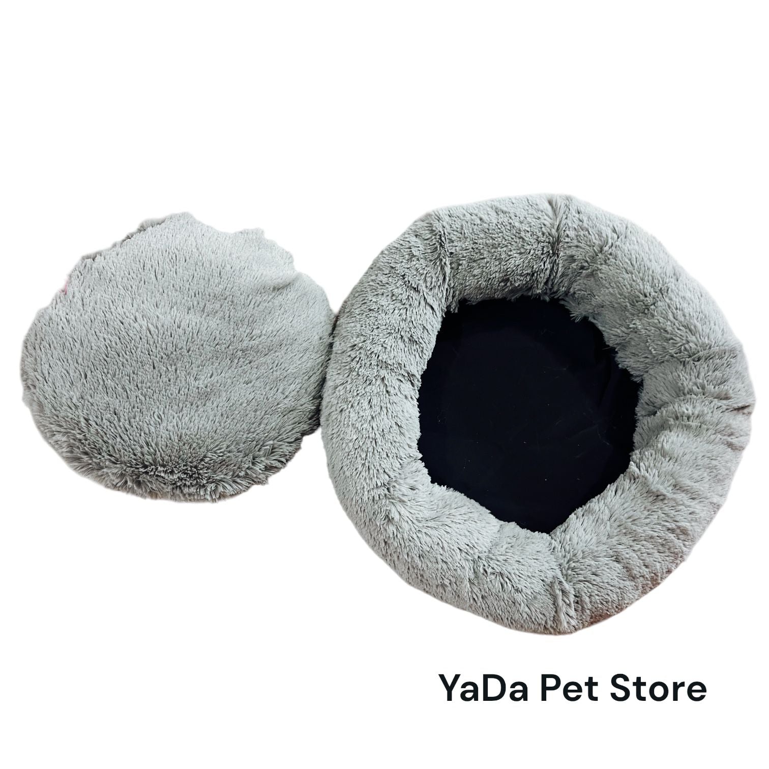 Cama antiestrés redonda para mascota, está hecho de una tela peluche que les encanta a los perritos. La cama se compone de dos piezas, la parte de en medio se desmonta para un mejor lavado. No es necesario lavar a mano, puedes meterlo a ciclo delicado en tu lavadora.