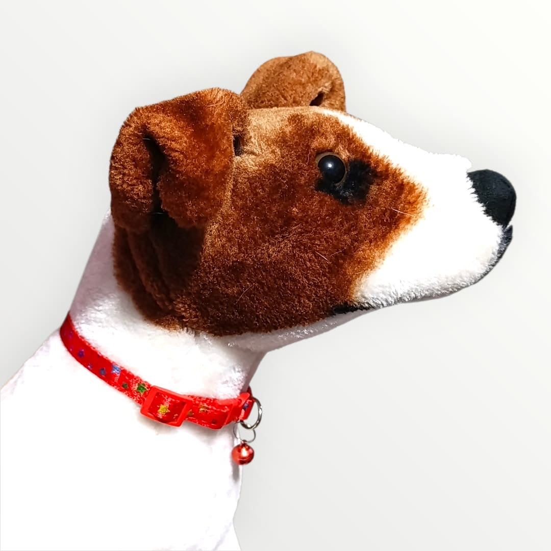 Collar para perro de nylon con decoración de estrellas. Por favor mide a tu mascota como en la imagen para saber su talla. A cualquiera se le pueda quitar el cascabel, tiene argolla para colocar la plaquita de tu mascota.