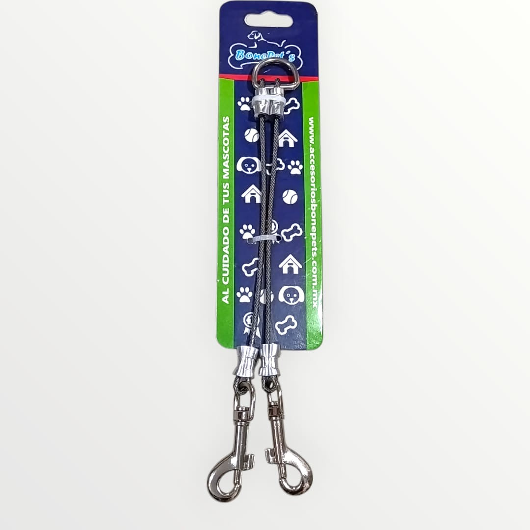 Ésta extensión puedes colocarla en la correa que ya tienes ya sea retráctil o normal y si tienes 2 perritos con una sola correa podrás salir a pasear con ellos.