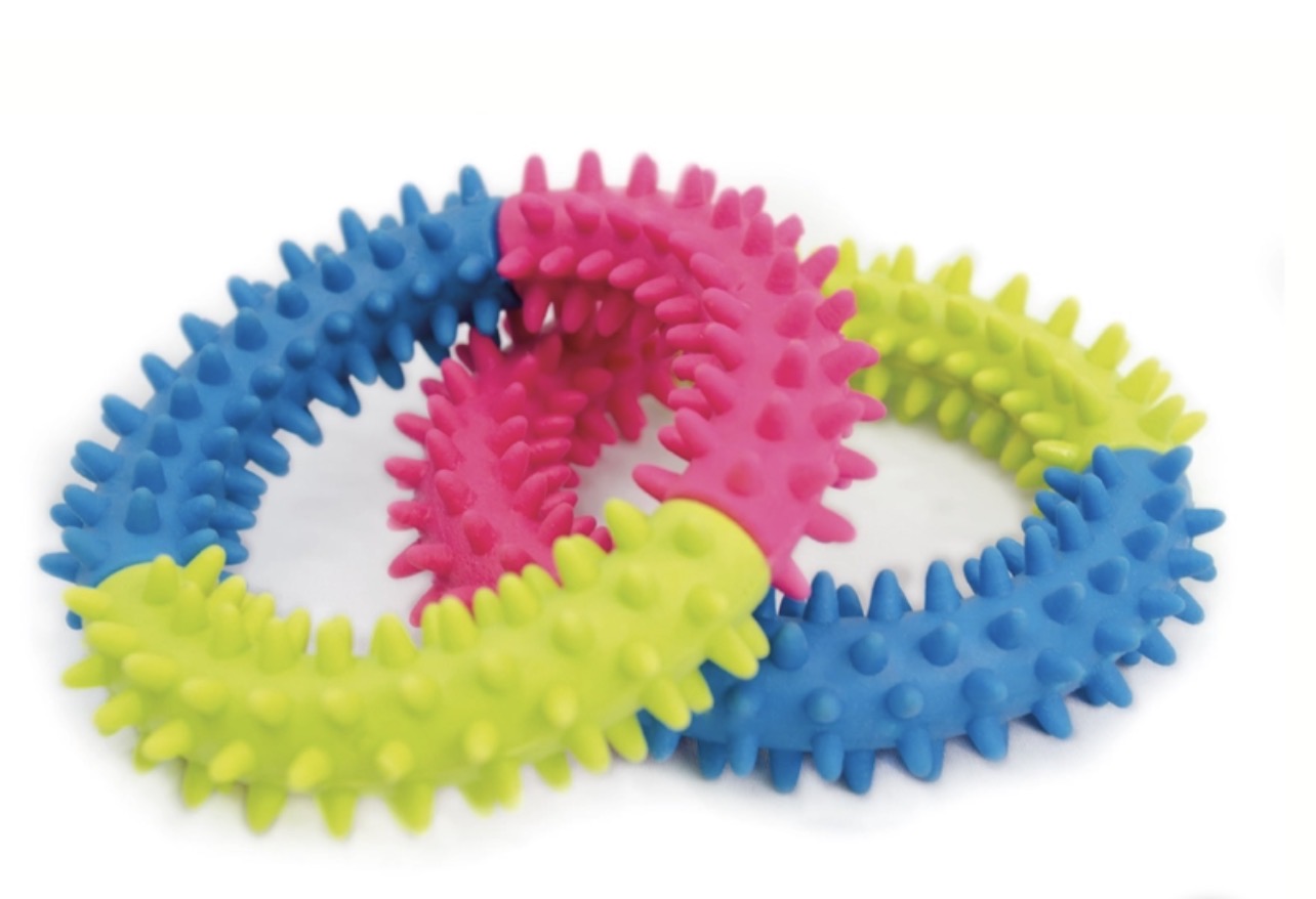 Juguete con bordes limpiadores para promover la salud dental del perro, sirve para morder, entretener e interactuar y además de ofrecer un suave masaje a las encías, gracias a su diseño. Ideal para cachorros y perros de raza pequeña.