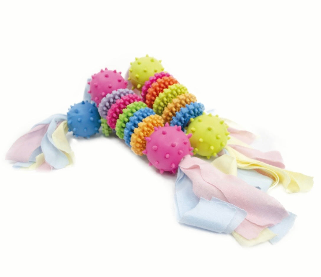 Juguete de caucho solido con hilos de algodón.