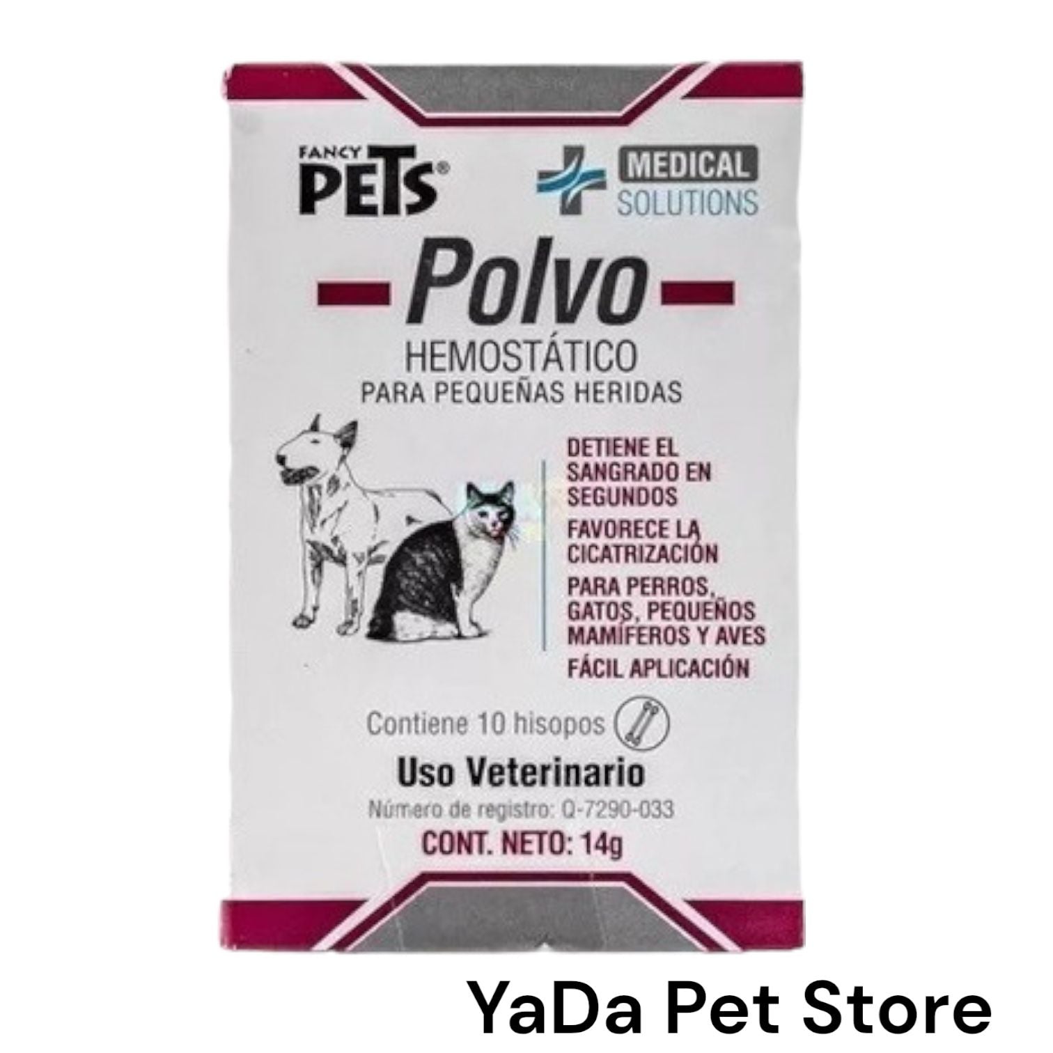 El Polvo Hemostático de Medical Solutions es una solución efectiva que detiene inmediatamente el sangrado en uñas por un corte excesivo, así como en pequeñas heridas ocasionadas por rasuradoras o tijeras durante el corte de pelo. Para las aves, es un remedio eficaz contra la hemorragia causada por el rompimiento de una pluma de sangre.