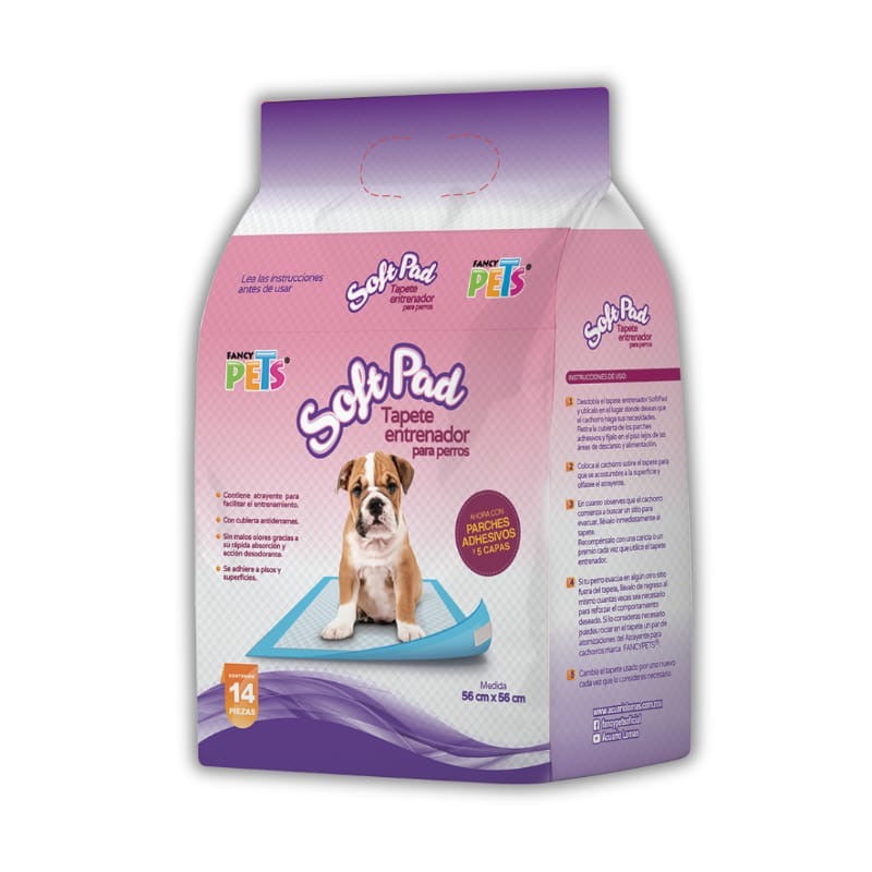 Tapete de entrenamiento desechables, que ayudan al entrenamiento de perros y protección para pisos. Con superficie acolchonada y de gran absorción, además contiene atrayente para facilitar el entrenamiento. Su sistema de red está diseñado para la distribución de los líquidos por todo el tapete que junto con las 4 capas de polímeros ultra absorbentes evitará algún derrame.