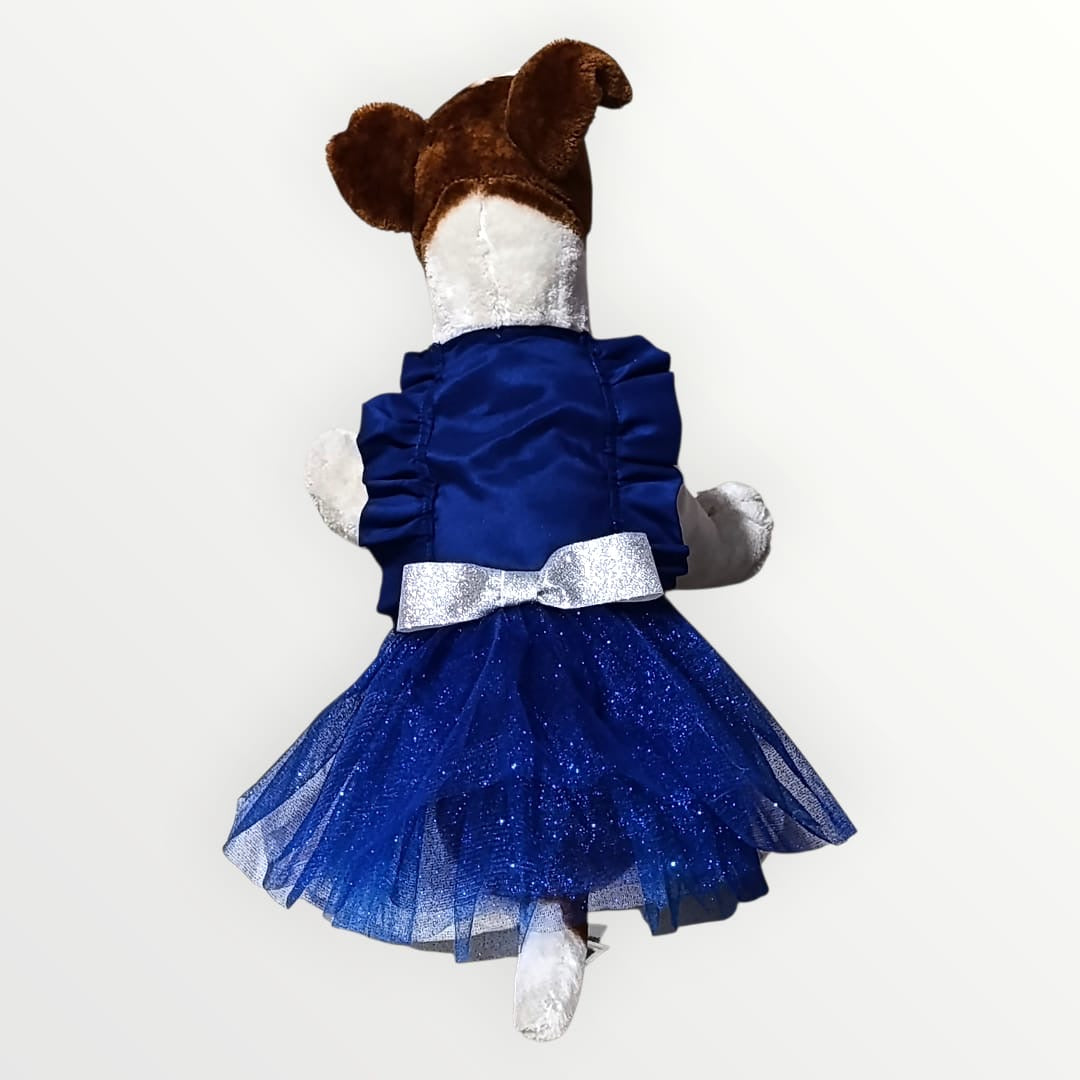 Vestido azul con plata para gatita o perrita. El cierre es con velcro.