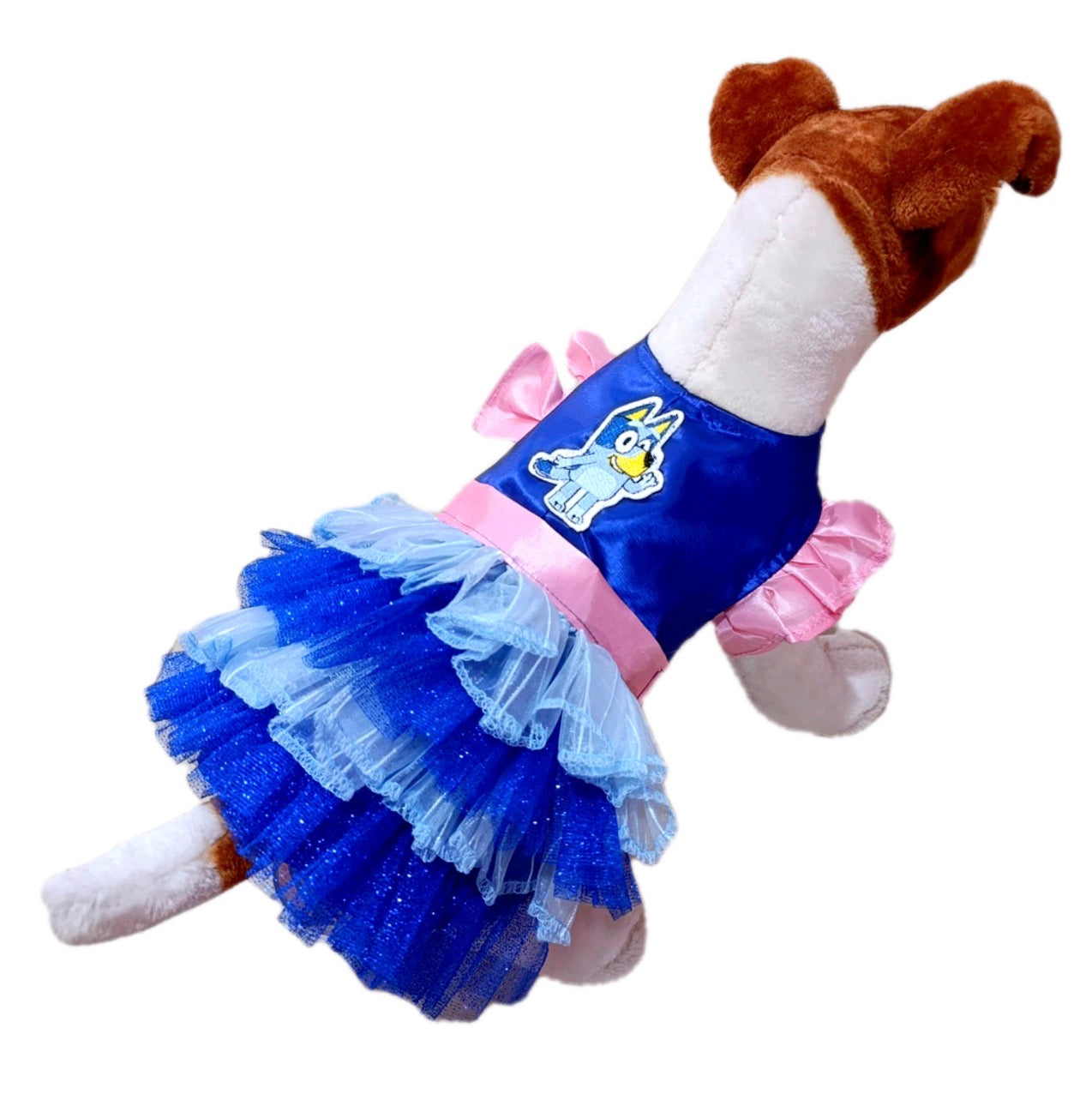 Vestido con olanes de Bluey ideal para celebrar a tu gatita o perrita. El cierre es con velcro.